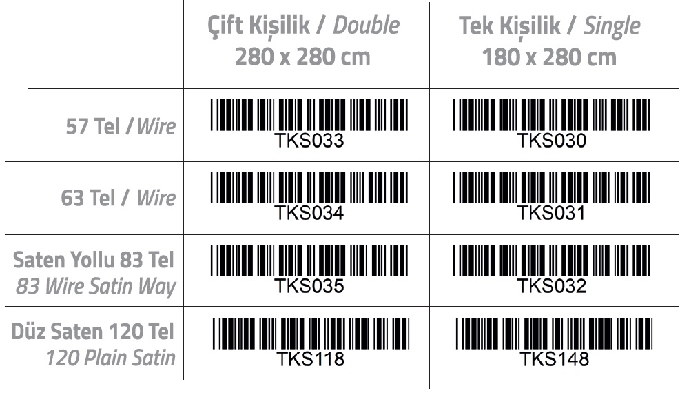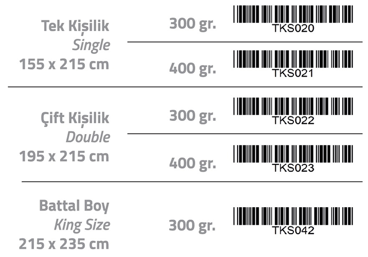 You can examine our single pique model which is 160×240 cm, 900 gr and our double pique model which is 200×240 cm, 1200 gr.
