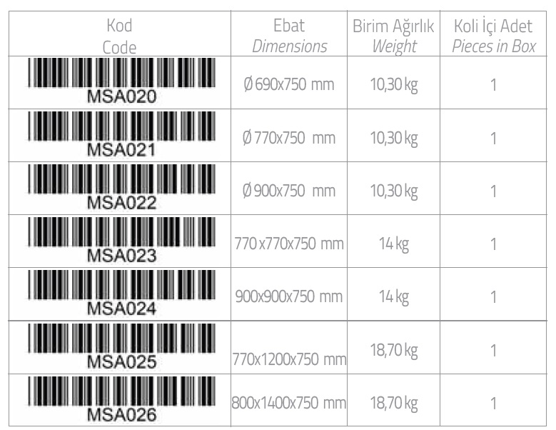 | ÖLÇÜ | ∅ 600 mm |