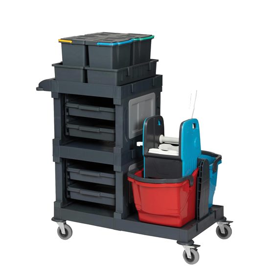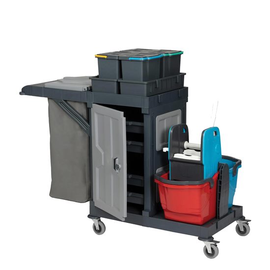 Single-bag Lidded Housekeeping Trolley with Cleaning Set