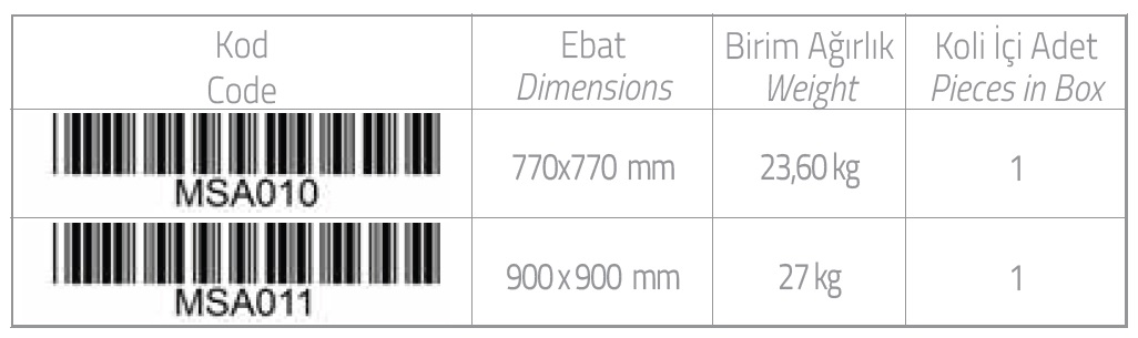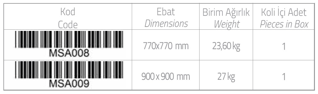 | ÖLÇÜ | 900 x 900 x 760 mm |