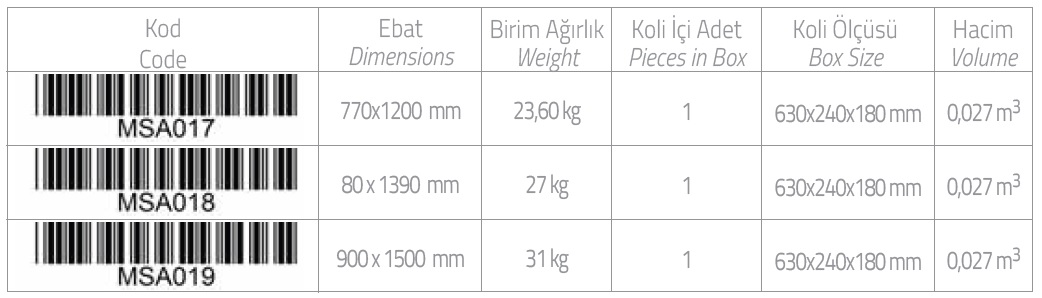 | BAĞLAMA ÖLÇÜSÜ | 285 x 680 x 635 mm |